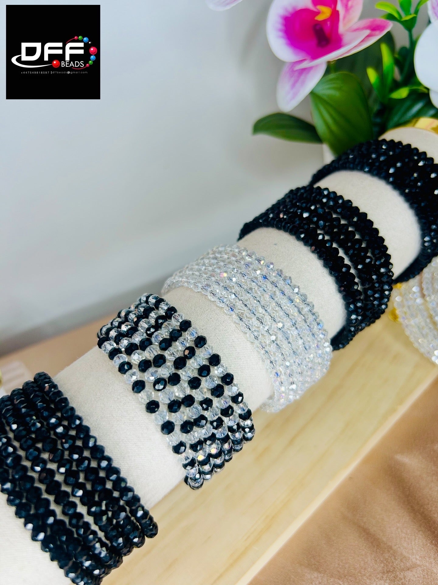 Each crystal bead catches the light with a subtle sparkle, creating a look that is both chic and timeless. The flexible metal string ensures that the bracelet retains its shape, making it a stylish and practical piece you’ll reach for time and again.